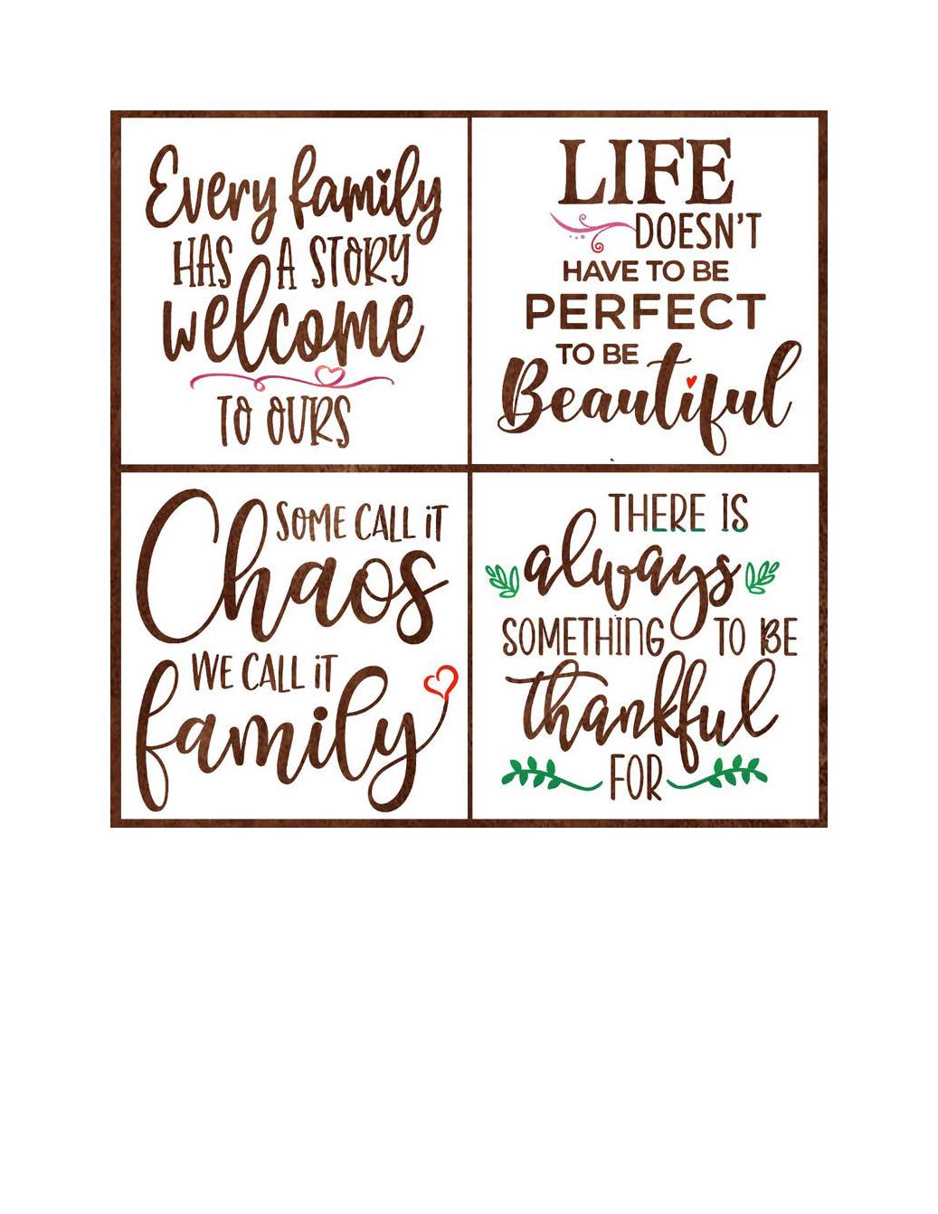 Pack of 4 stencils. Each stencil is 8" x 8". DURABLE, FLEXIBLE AND REUSABLE: These stencils are made of premium quality laser cut 10 mil plastic stencils, the ideal flexibility for painting on multiple flat surfaces including walls, wood, glass, fabric, canvas and furniture. High Quality!